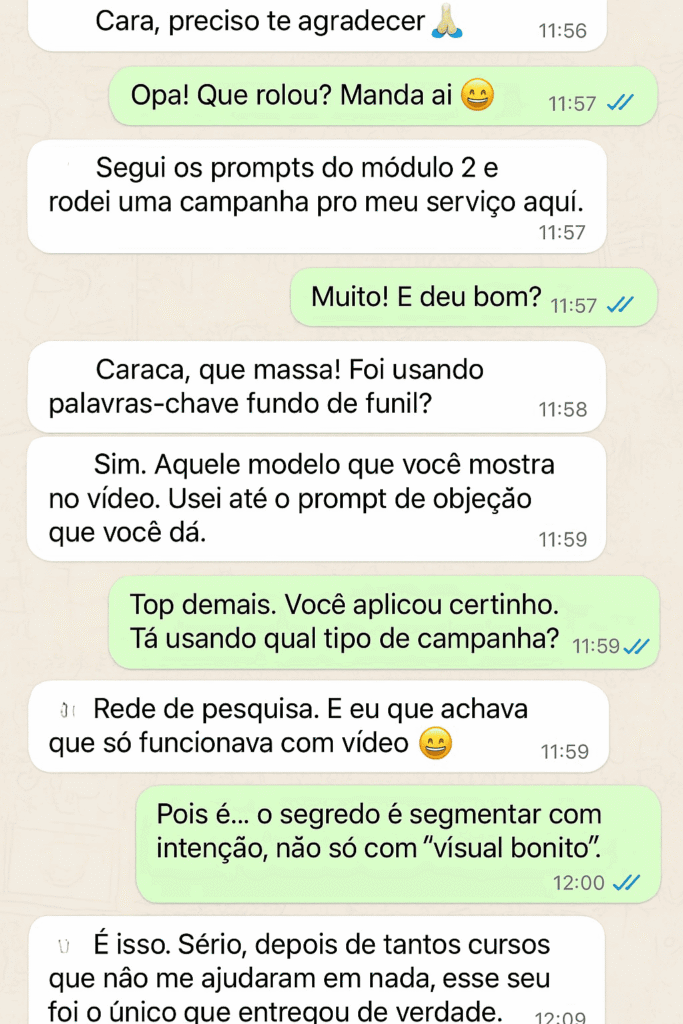 Não. Esse curso não é uma introdução teórica ao Google Ads. Ele é direto ao ponto, para quem quer aplicar os prompts e montar campanhas rapidamente — com foco em conversão e prática.